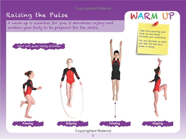 The book starts out by teaching you some basic warm up activities, stretches, and key shapes that will be useful when learning new skills. The author also provides tips on how to have better posture when preforming/presenting to the judges. Throughout the course of the book you will learn basic rolls, leaps, walkovers, handstands, and cartwheels. I found the sticky notes on every page to be helpful reminders as to what you should be doing to achieve the best results! The step by step demonstrations preformed by both a male and female gymnast, also provide a clear, easy to follow instruction for young children. At the end of the book the author provides two easy to follow practice routines that includes everything covered in the book.